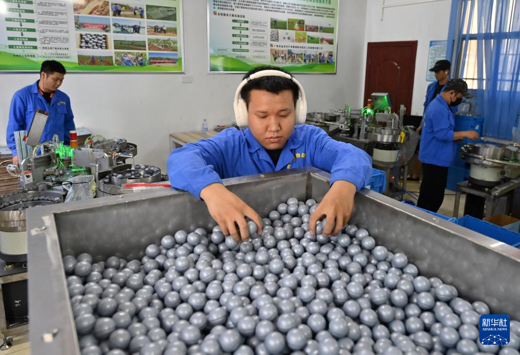 7月23日,在广西南宁市国家生防天敌扩繁基地,工作人员生产螟黄赤眼蜂释放球。新华社记者 陆波岸 摄