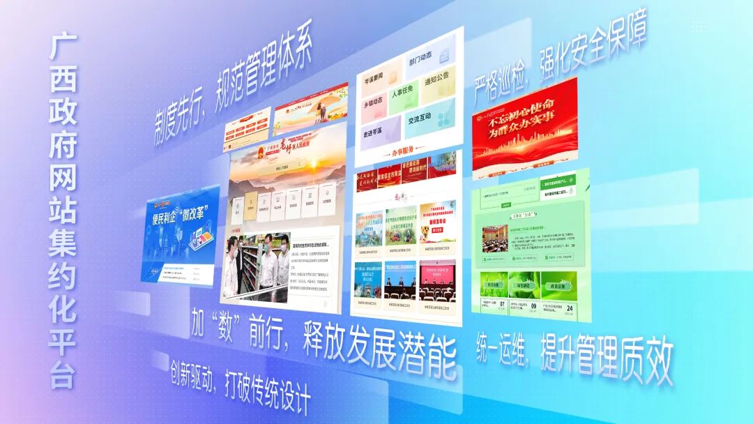 制度先行,规范管理体系。编制印发《广西政府网站集约化平台管理办法》、《广西政务新媒体管理效能提升工作方案》等,为全区政府网站和政务新媒体健康有序发展提供政策支撑。