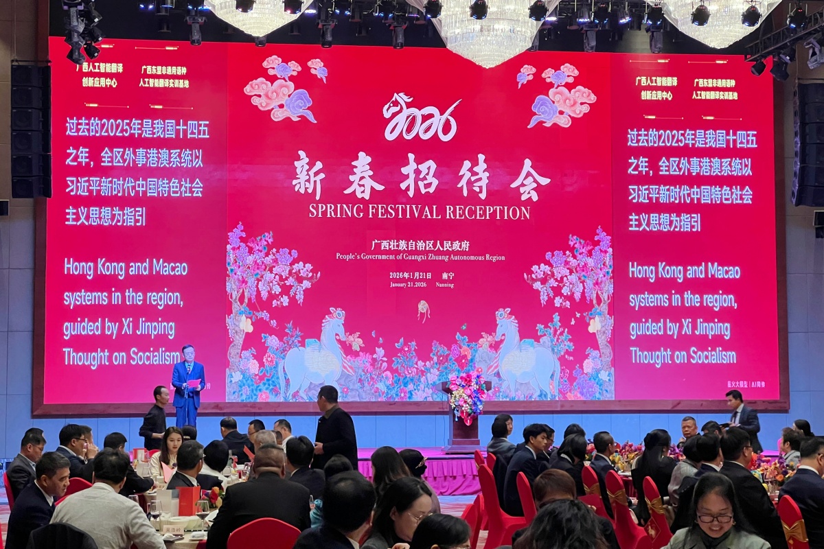 1月21日,自治区政府在南宁举办2026年新春招待会,邀请东盟各国驻南宁总领事馆官员、香港特别行政区政府驻广西联络处官员、在桂外籍专家、友好人士、港澳商协会和侨商代表等欢聚一堂,共迎新春、共叙友谊、共话未来。