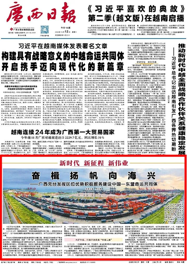自治区第十二次党代会提出“要把深化与东盟合作同全面对接粤港澳大湾区发展联动起来,与东盟共挽,与大湾区相融,打通开放发展的‘任督二脉’”,绘制出广西开放发展“路线图”。